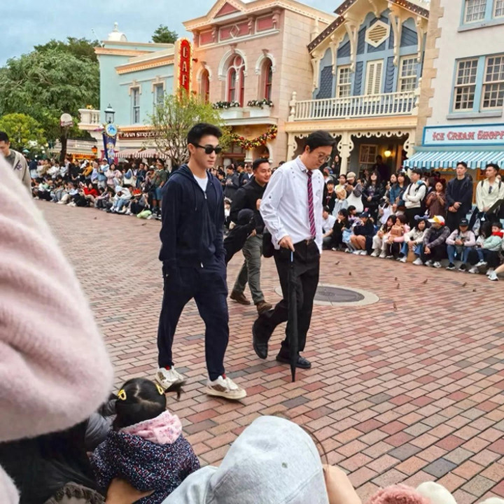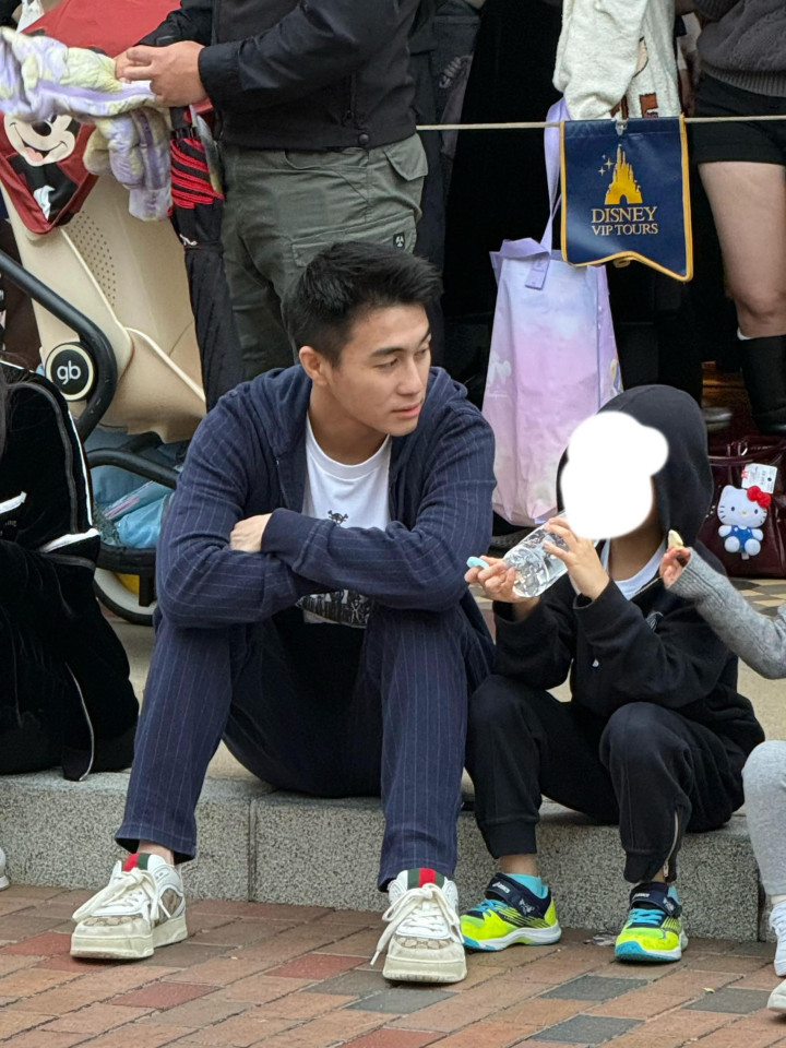 12月13日,有网友在社交平台晒出偶遇何猷君带着两个孩子去迪士尼玩的照片,看起来奶爸范十足,父子、父女三人同框画面温馨有爱。